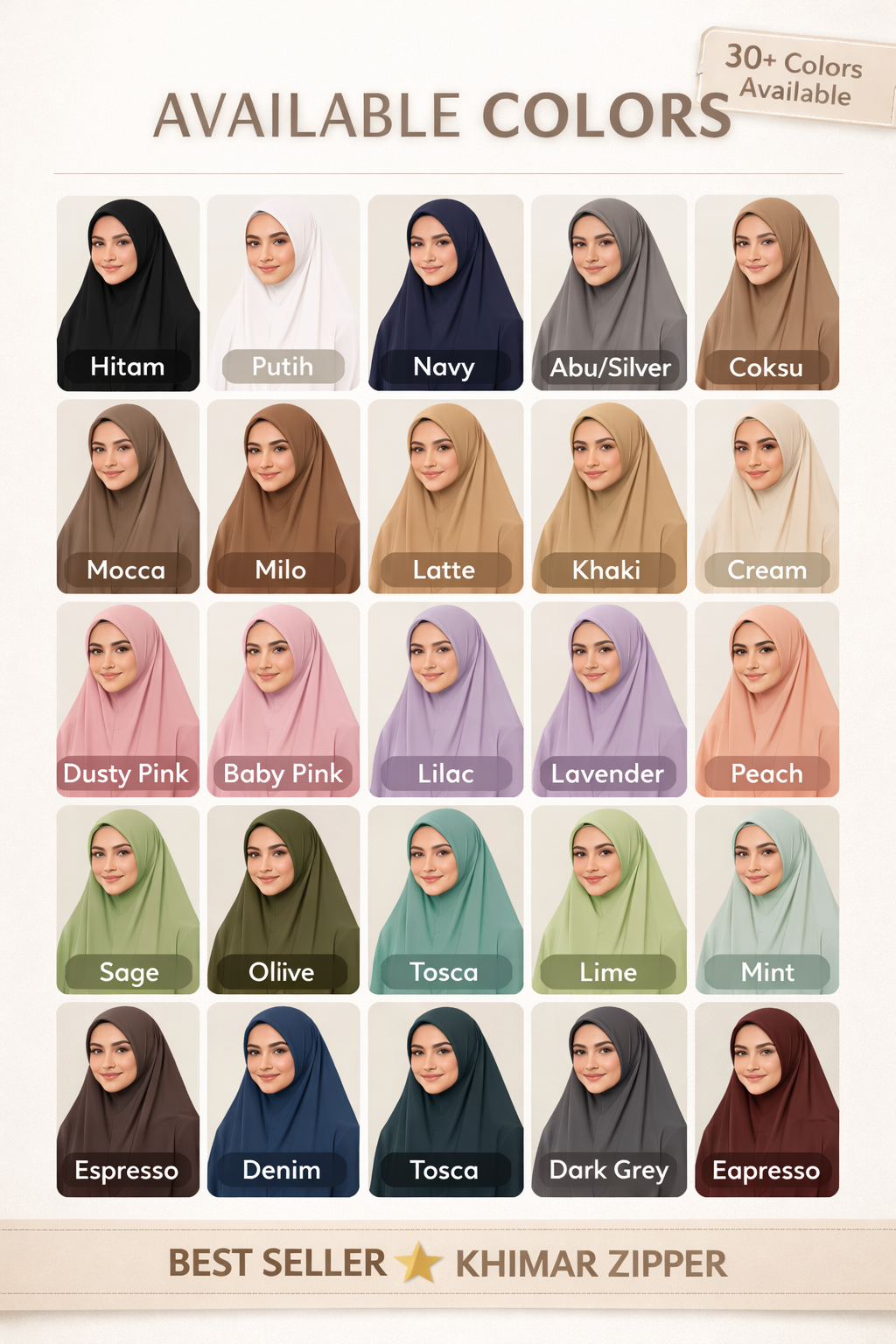 Resleting dagu pintar untuk kemudahan pemakaian instan, membebaskan Anda berkreasi dengan ragam siluet hijab.